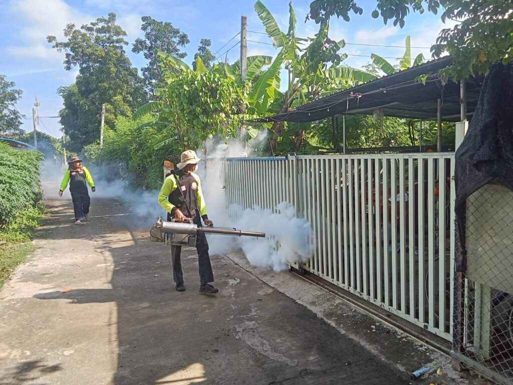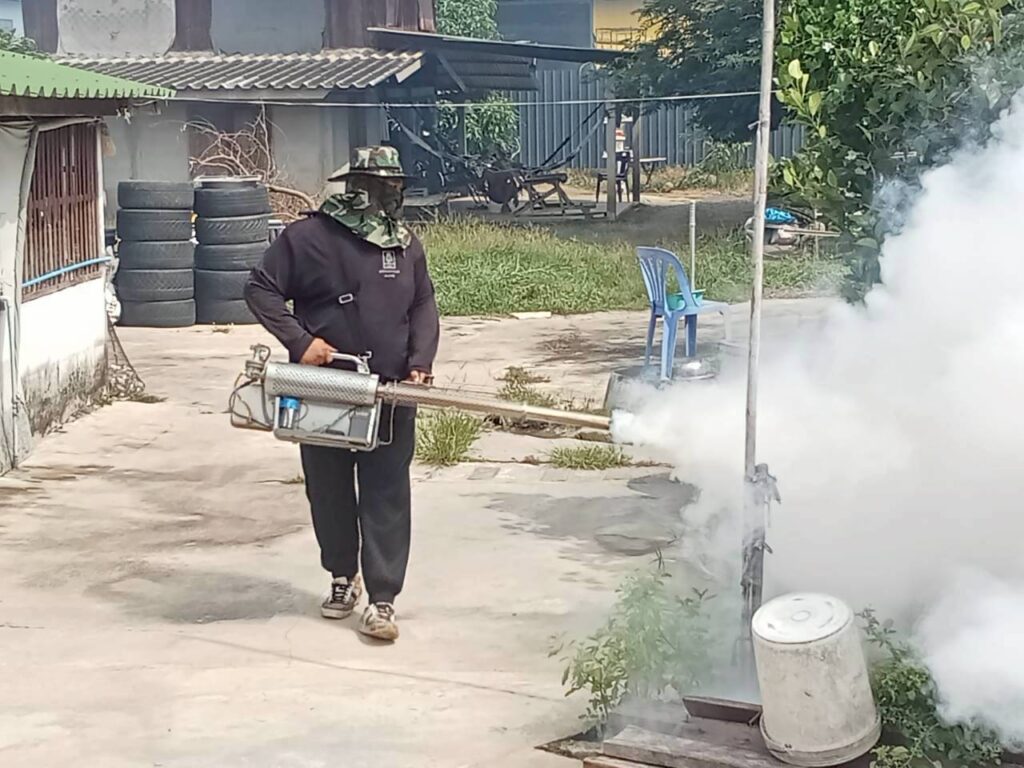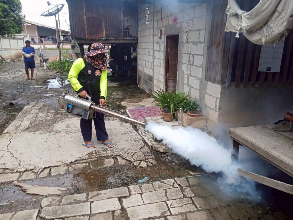āļ­āļšāļ•.āļ—āļ­āļ‡āđ€āļ­āļ™ āļ”āļģāđ€āļ™āļīāļ™āļāļēāļĢāļžāđˆāļ™āļŦāļĄāļ­āļāļ„āļ§āļąāļ™āļāļģāļˆāļąāļ”āļĒāļļāļ‡āļĨāļēāļĒ āđ€āļžāļ·āđˆāļ­āļ›āđ‰āļ­āļ‡āļāļąāļ™āđāļĨāļ°āļ„āļ§āļšāļ„āļļāļĄāļāļēāļĢāđāļžāļĢāđˆāļĢāļ°āļšāļēāļ”āļ‚āļ­āļ‡āđ‚āļĢāļ„āđ„āļ‚āđ‰āđ€āļĨāļ·āļ­āļ”āļ­āļ­āļāđƒāļ™āļžāļ·āđ‰āļ™āļ—āļĩāđˆāļ•āļģāļšāļĨāļ—āļ­āļ‡āđ€āļ­āļ™ āđ‚āļ”āļĒāđ€āļˆāđ‰āļēāļŦāļ™āđ‰āļēāļ—āļĩāđˆāļ›āđ‰āļ­āļ‡āļāļąāļ™āđāļĨāļ°āļšāļĢāļĢāđ€āļ—āļēāļŠāļēāļ˜āļēāļĢāļ“āļ āļąāļĒāđāļĨāļ°āļāļ­āļ‡āļŠāđˆāļēāļ‡ āļĨāļ‡āļžāļ·āđ‰āļ™āļ—āļĩāđˆāļ•āļēāļĄāļŦāļĄāļđāđˆāļšāđ‰āļēāļ™āđ€āļžāļ·āđˆāļ­āļāļģāļˆāļąāļ”āđāļŦāļĨāđˆāļ‡āđ€āļžāļēāļ°āļžāļąāļ™āļ˜āļļāđŒāļĒāļļāļ‡āļĨāļēāļĒāļ—āļĩāđˆāđ€āļ›āđ‡āļ™āļžāļēāļŦāļ°āļ™āļģāđ‚āļĢāļ„ āđ„āļ”āđ‰āļ”āļģāđ€āļ™āļīāļ™āļāļēāļĢāļžāđˆāļ™āļŦāļĄāļ­āļāļ„āļ§āļąāļ™āđāļĨāđ‰āļ§āđƒāļ™āļžāļ·āđ‰āļ™āļ—āļĩāđˆ 15 āļŦāļĄāļđāđˆ