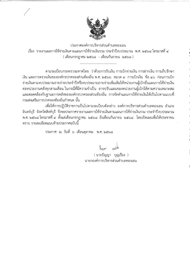 FacebookLine เมนูนำทาง เรื่อง ประกาศองค์การบริหารส่วนตำบลทองเอน เรื่อง รายงานพิสูจน์ยอดเงินสะสมที่สามารถนำไปใช้ได้ตามรายงานการเงิน ณ วันสิ้นเดือนกันยายน 2568 ประกาศองค์การบริหารส่วนตำบลทองเอน เรื่อง รายงานผลการใช้จ่ายเงินรวม ประจำปีงบประมาณ พ.ศ.2568 ไตรมาสที่ 1 – 4 (เดือนตุลาคม 2567 – เดือนกันยายน 2568)