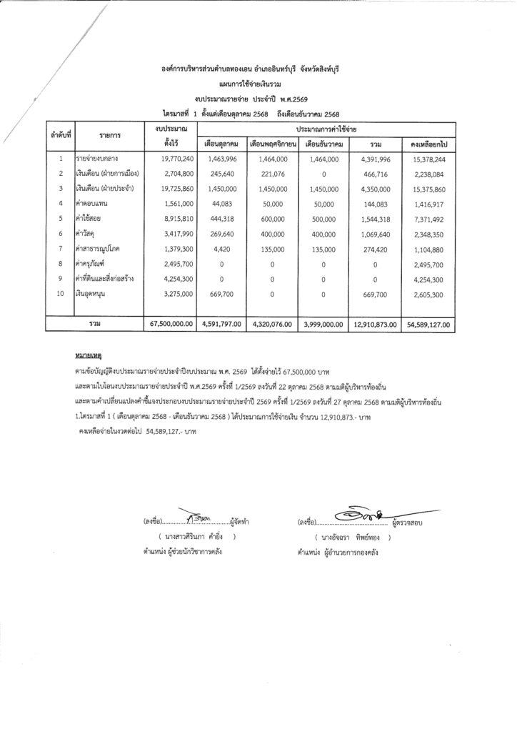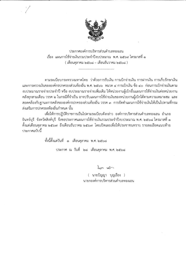 FacebookLine เมนูนำทาง เรื่อง ประกาศองค์การบริหารส่วนตำบลทองเอน เรื่องรายงานงบแสดงผลการดำเนินงานที่จ่ายจากเงินรายรับตามแผนงานรวม ประจำปีงบประมาณ พ.ศ.2568 ไตรมาสที่ 4